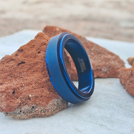 6mm Tungsten Ring Sandblasted Blue Rotating Rings For Men and Women, Wedding Tungsten band, Anniversary Ring for women, Valentines