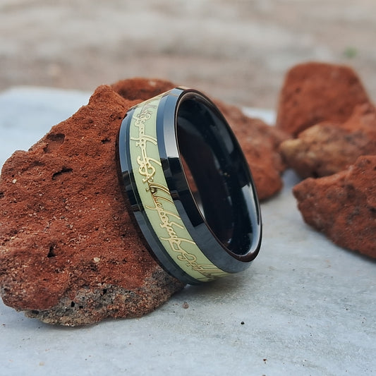 8mm Black Tungsten Rings for Men & Women with Glow Design – Lord of the Rings-Inspired Wedding Band, Durable Stylish Free Cutom Engraving