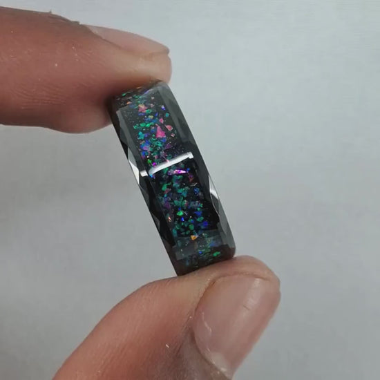 8mm Polished Dome Tungsten Ring with Multi-Color Opal Inlay for Men and Women – Black Tungsten Design Free Custom Engraving